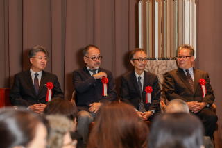 中山高甫常務理事、京都いけばな協会 松本司会長、大阪府花道家協会 宇田土風会長、兵庫県いけばな協会